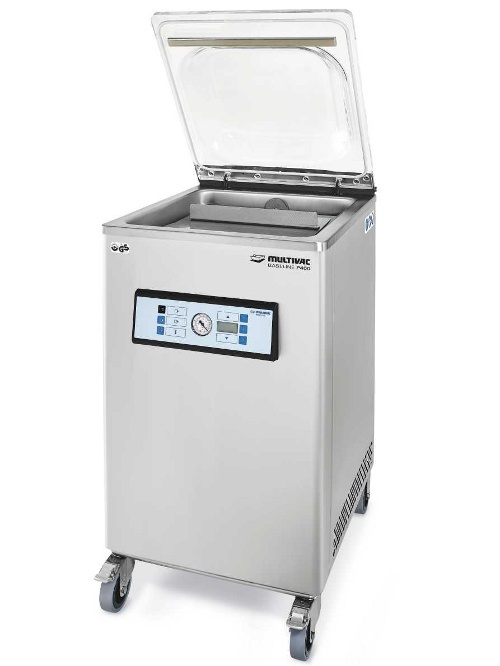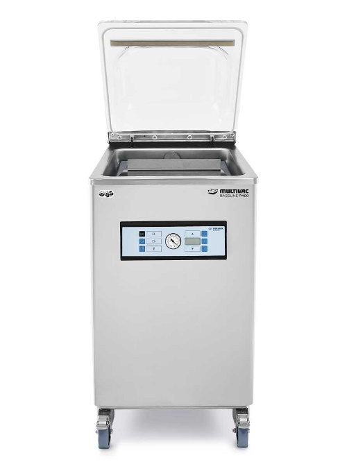 The BASELINE P 400 is the most compact free-standing chamber machine from MULTIVAC. It features a sealing bar and is equipped with a pump with an output of 60 m3/h.